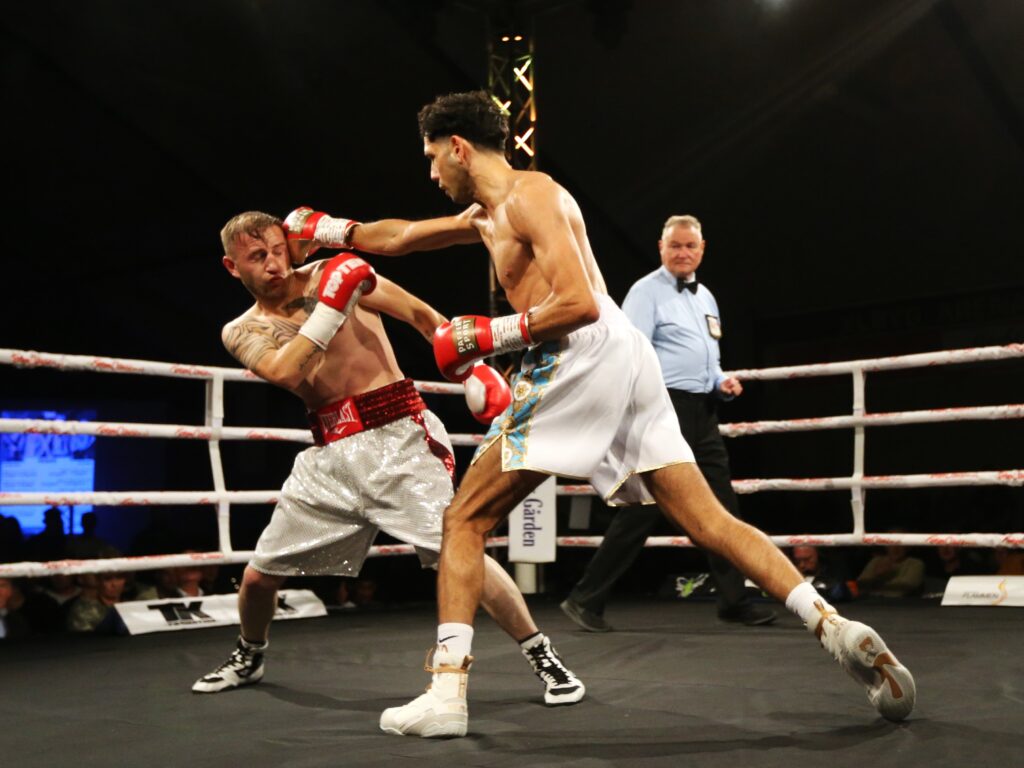 I en af stævnets mere velboksede kampe fordoblede Ahmad El Ahmad (2-0) antallet af professionelle kampe og sejre. Han stod over for en georgisk modstander, og den slags kan som udgangspunkt opdeles i flere forskellige kategorier. Khvicha Gigolashvili (19-65-1) hører til blandt dem, der kæmper sin chance og ikke får ondt i armen, så snart det bliver hårdt. Han havde flere gange Ahmad El Ahmad på krogen, og selvom den danske sejr aldrig kom i fare, var der tegn på, at Ahmed El Ahmad skal forbedre nogle ting, når han kommer til at stå over for fysisk stærkere modstandere.